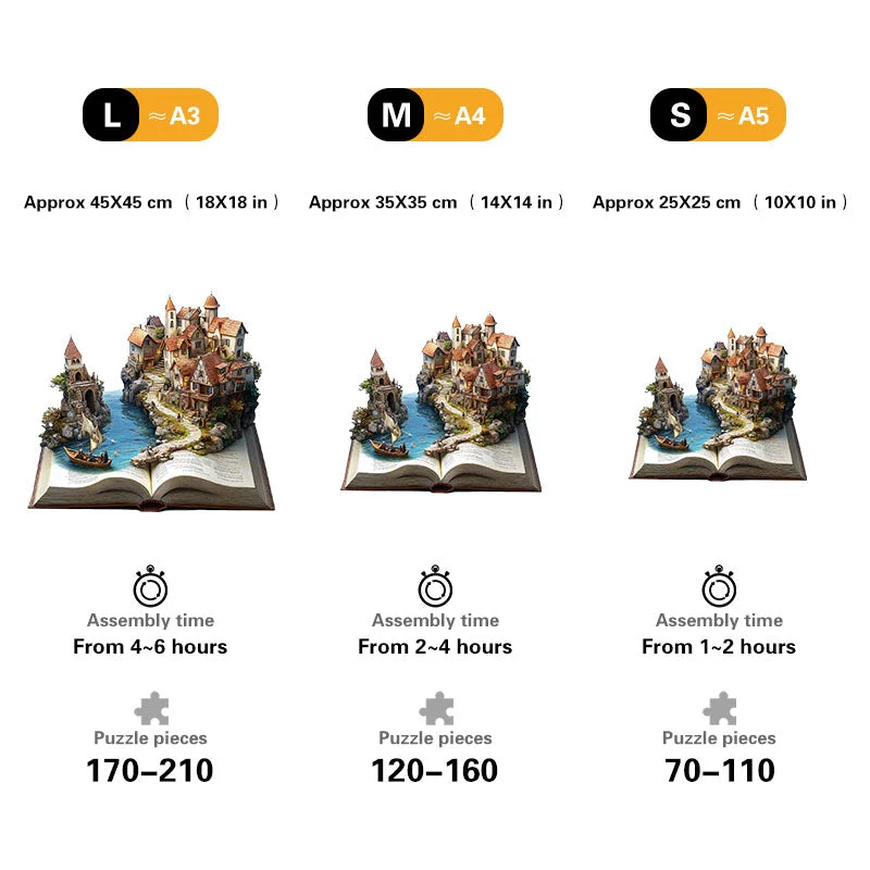 size:M(A4) Approx 35x35 cm (14x14 inches) - 120~160 pcs , assembly time 2-4 hours.
