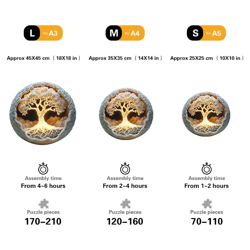 size:L(A3) Approx 45x45 cm (18x18 inches) - 170~210 pcs , assembly time 4-6 hours.