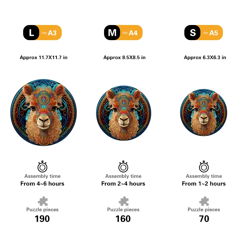 size:L(A3) Approx 29x29 cm (11.7×11.7 inches)- 190pcs , assembly time 4-6 hours.