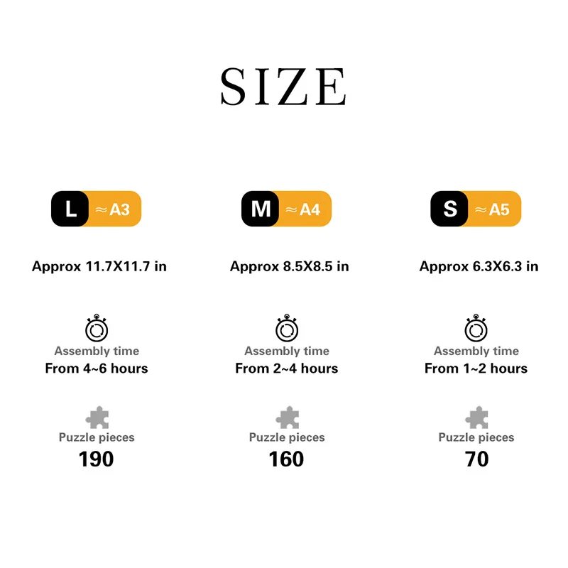 size:M(A4) Approx 21x21 cm (8.5×8.5 inches) - 160 pcs , assembly time 2-4 hours.