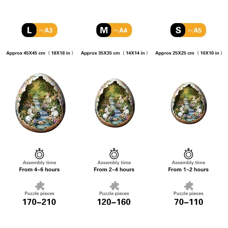 size:M(A4) Approx 35x35 cm (14x14 inches) - 120~160 pcs , assembly time 2-4 hours.