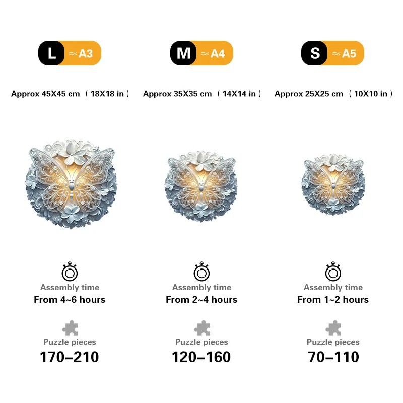 Elegant White Butterfly Wooden Jigsaw Puzzle