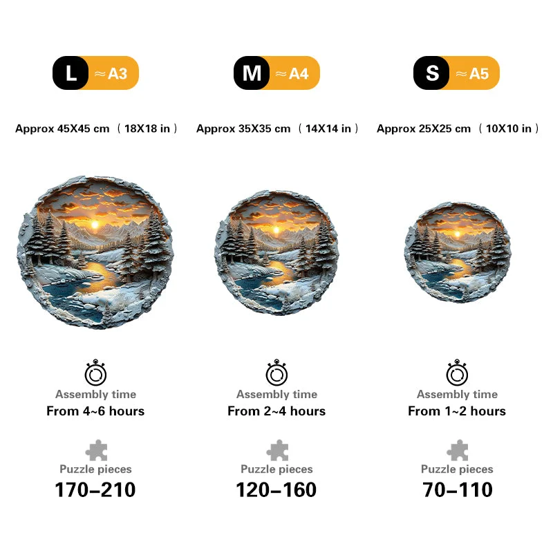 Winter Sunset in the Mountains Wooden Jigsaw Puzzle