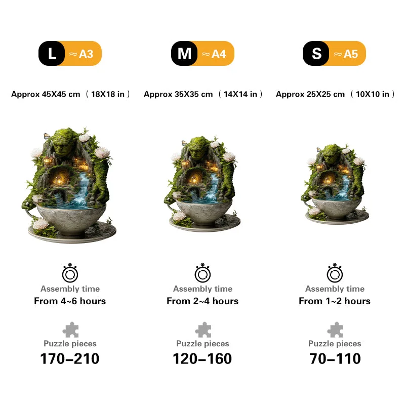 size:M(A4) Approx 35x35 cm (14x14 inches) - 120~160 pcs , assembly time 2-4 hours.