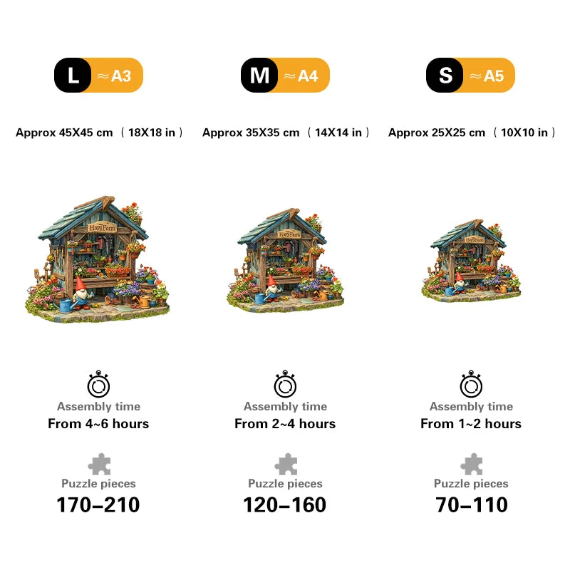 size:L(A3) Approx 45x45 cm (18x18 inches) - 170~210 pcs , assembly time 4-6 hours.