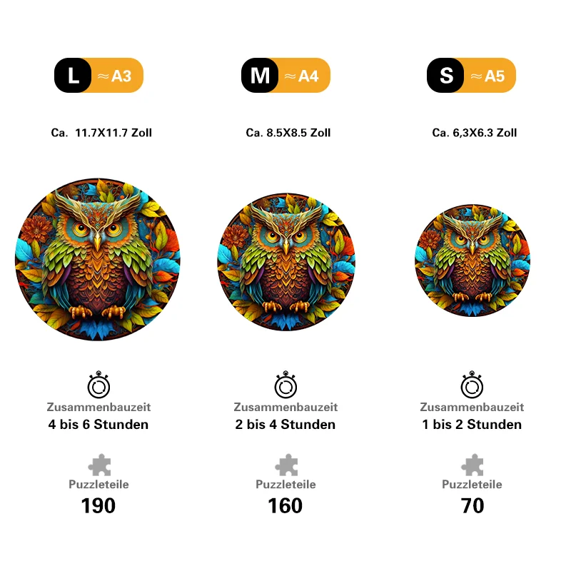 Größe:L(A3) Ca. 29 x 29 cm (11,7 x 11,7 Zoll) – 190 Stück, Montagezeit 4–6 Stunden.
